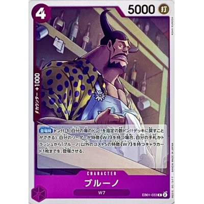 [On Play] DON!! ?1 (You may return the specified number of DON!! cards from your field to your DON!! deck.): If your Leader has the {Water Seven} type, play up to 1 {Water Seven} type Character card with a cost of 5 other than [Blueno] from your hand or trash.