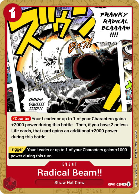 [Counter] Up to 1 of your Leader or Character cards gains +2000 power during this battle. Then, if you have 2 or less Life cards, that card gains an additional +2000 power.