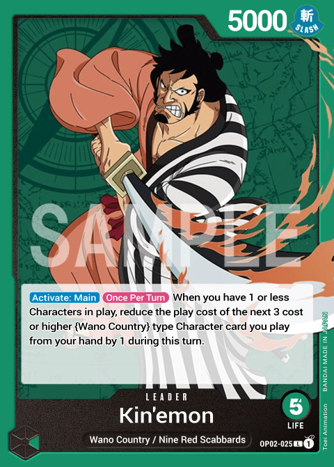 [Activate: Main] [Once Per Turn] If you have 1 or less Characters, the next time you play a {Land of Wano} type Character card with a cost of 3 or more from your hand during this turn, the cost will be reduced by 1.