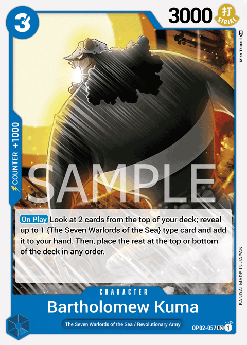 [On Play] Look at 2 cards from the top of your deck; reveal up to 1 {The Seven Warlords of the Sea} type card and add it to your hand. Then, place the rest at the top or bottom of the deck in any order.