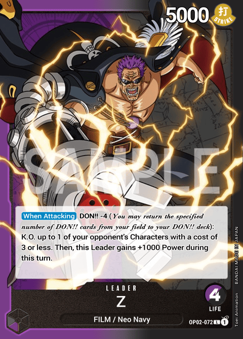 [When Attacking] DON!! ?4 (You may return the specified number of DON!! cards from your field to your DON!! deck.): K.O. up to 1 of your opponent's Characters with a cost of 3 or less. Then, this Leader gains +1000 power during this turn.