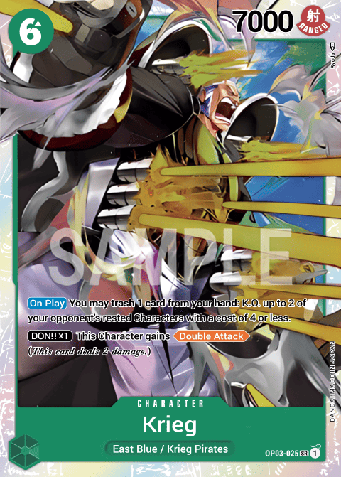 [On Play] You may trash 1 card from your hand: K.O. up to 2 of your opponent's rested Characters with a cost of 4 or less.