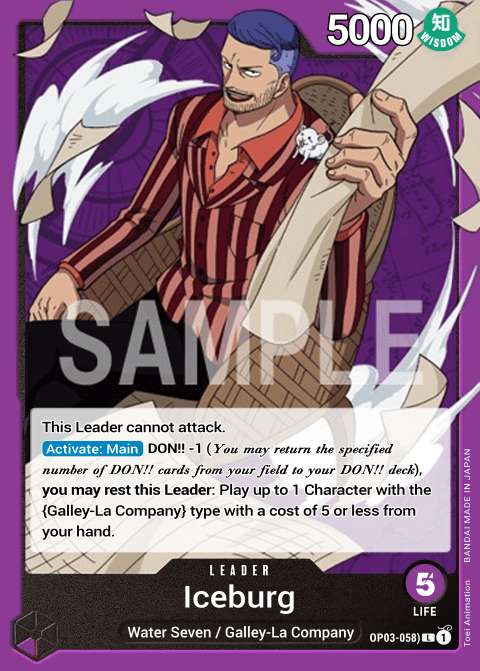 [Activate: Main] DON!! ?1 (You may return the specified number of DON!! cards from your field to your DON!! deck.) You may rest this Leader: Play up to 1 {Galley-La Company} type Character card with a cost of 5 or less from your hand.