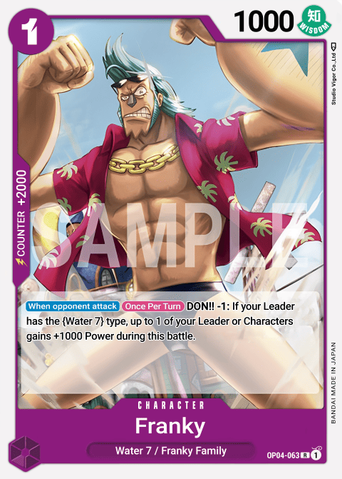 [On Your Opponent's Attack] [Once Per Turn] DON!! ?1 (You may return the specified number of DON!! cards from your field to your DON!! deck.): If your Leader has the {Water Seven} type, up to 1 of your Leader or Character cards gains +1000 power during this battle.