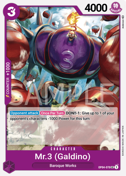 [On Your Opponent's Attack] [Once Per Turn] DON!! ?1 (You may return the specified number of DON!! cards from your field to your DON!! deck.): Give up to 1 of your opponent's Characters ?1000 power during this turn.