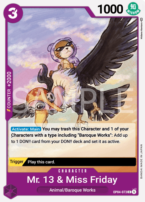 [Activate: Main] You may trash this Character and 1 of your Characters with a type including "Baroque Works": Add up to 1 DON!! card from your DON!! deck and set it as active.