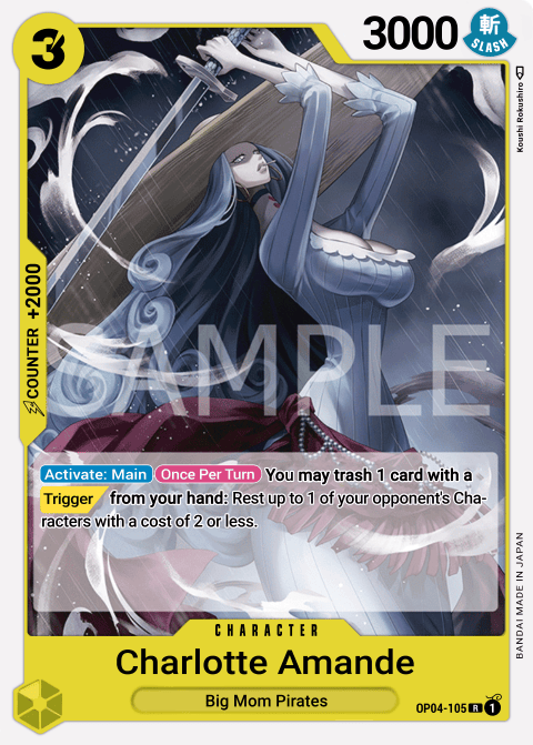 [Activate: Main] [Once Per Turn] You may trash 1 card with a [Trigger] from your hand: Rest up to 1 of your opponent's Characters with a cost of 2 or less.