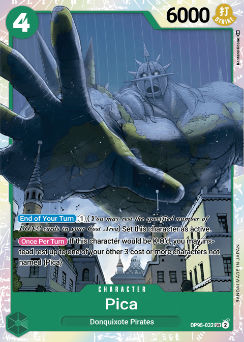 [Once Per Turn] If this Character would be K.O.'d, you may rest up to 1 of your Characters with a cost of 3 or more other than [Pica] instead.