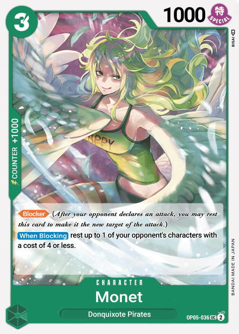 [Blocker] (After your opponent declares an attack, you may rest this card to make it the new target of the attack.)