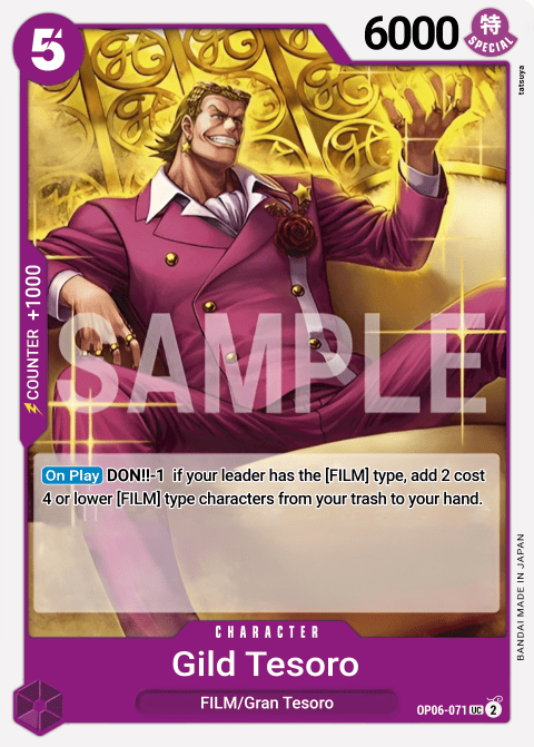 [On Play] DON!! ?1 (You may return the specified number of DON!! cards from your field to your DON!! deck.): If your Leader has the {FILM} type, add up to 2 {FILM} type Character cards with a cost of 4 or less from your trash to your hand.