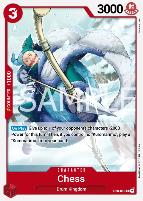 [On Play] Give up to 1 of your opponent's Characters ?2000 power during this turn. Then, if you don't have [Kuromarimo], play up to 1 [Kuromarimo] from your hand.